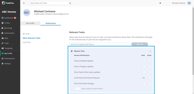 NOTE: In order to receive the Relevant task notifications configured, you must be assigned to a Task within a Job.