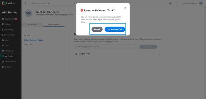 Select Yes to Remove Task